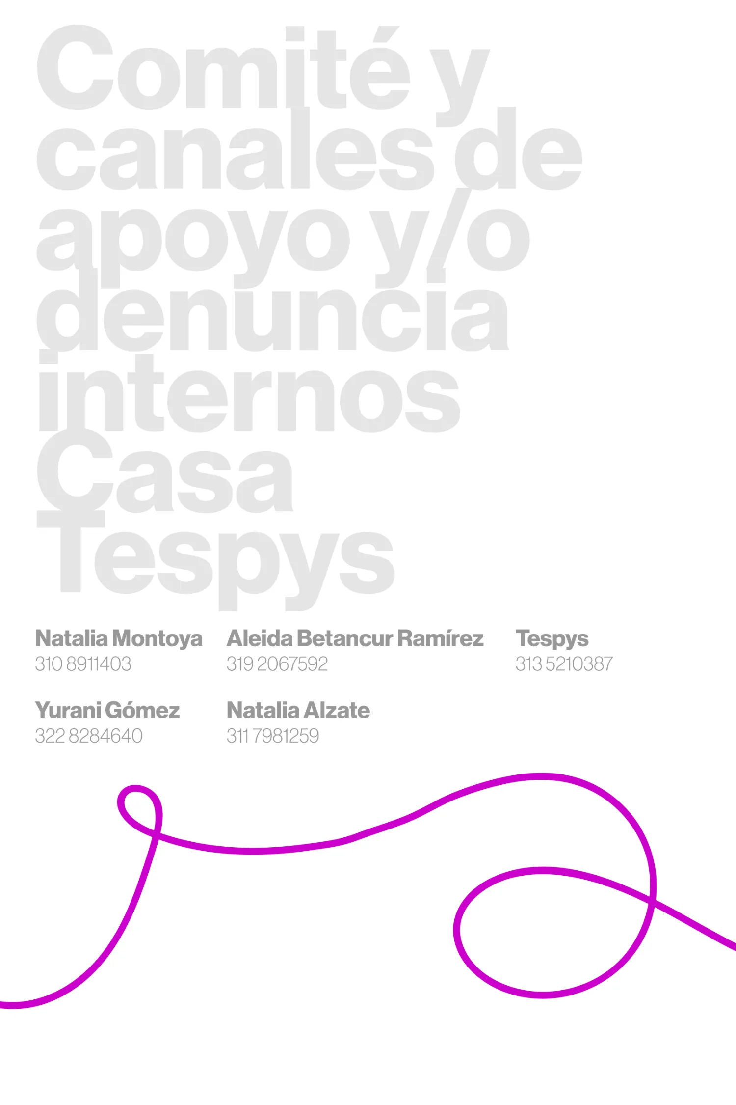 En la Corporación Cultural Teatro Tespys, con 37 años de trayectoria artística y comunitaria, reafirmamos nuestro compromiso ético con la cultura y la vida digna. Entendemos que el arte debe florecer en entornos libres de violencia y discriminación, por lo que hemos implementado nuestro Protocolo de Prevención, Atención y Reparación para Violencias Basadas en Género (VBG).
